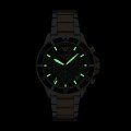 This Emporio Armani watch has a case made of stainless steel with a diameter of 43 mm and is fitted with a stainless steel band. Inside the case lies a Seiko movement and the watch features a Mineral crystal.