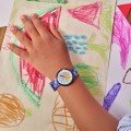 This Flik Flak watch has a case made of Bio-sourced resin with a diameter of 30 mm and is fitted with a textile band. Inside the case lies a ETA movement and the watch features a Acrylic crystal.