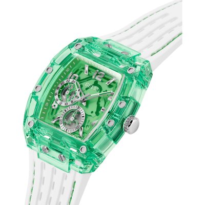 This Guess watch has a case made of Resin with a diameter of 43 mm and is fitted with a rubber band.
