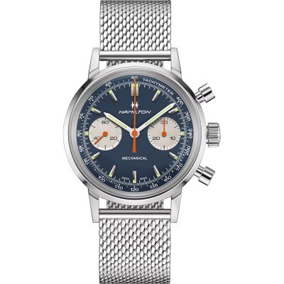 This Hamilton watch has a case made of stainless steel with a diameter of 40 mm and is fitted with a leather band. Inside the case lies a ETA movement and the watch features a Double anti-reflective sapphire crystal.
