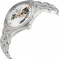 The Hamilton Jazzmaster Viewmatic perfectly balances dress and sport combining a beautifully finished case with a mix of high-polish and brushed surfaces and an intriguing open heart dial displaying the mechanical elements beating beneath. The exquisitely executed cutouts in the dial have a high-polish bevel transitioning sharply to a brushed inside edge, directing the eye to the automatic H-10 movement. This very accurate Hamilton movement contains a non-magnetic Nivachron balance spring and has a power reserve of no less than 80 hours. The Jazzmaster Viewmatic Open Heart Auto is available in a range of colours and in 40 mm and 36 mm case sizes, for both men and women.