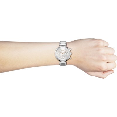 This Hugo Boss watch has a case made of stainless steel with a diameter of 36 mm and is fitted with a stainless steel band. Inside the case lies a Seiko Instruments Inc. movement and the watch features a Mineral crystal.