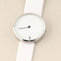 This Jacob Jensen watch has a case made of stainless steel with a diameter of 38 mm and is fitted with a leather band. Inside the case lies a Miyota movement and the watch features a Mineral crystal.