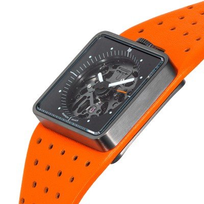 The father of modern French design Roger Tallon, designed the Lip Big TV watch series in the nineteenseventies. The sturdy square case and robust bracelet give the watch a retro feel, while at the same time, design details such as the crown, logo and recessed dial have an unmistakable timeless and modern appeal. This latest addition to the Lip Big TV family is a contemporary reinterpretation with a self-winding movement and an all-titanium case. The alloy gives it sober, pure lines, while retaining the design of the original model. The skeleton version of this watch features a titanium-toned movement, to be admired through the transparent caseback.