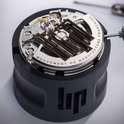 In the early 1930s, LIP created the Type 14 aircraft watch. Its sturdy case was made of a light alloy, and both winding and time-setting were done by means of a fluted bezel, making it easy to grip, even when wearing gloves. The mechanism was fitted to the instrument panels of French Air Force fighters of the day that also operated during WWII. The new Type 14 watch is inspired by this famous timepiece. It features a bi-directional internal rotating bezel, activated by the dedicated crown positioned at 2 o'clock. Like the original bezel, which was screwed onto the dashboard, it features a triangular index designed to provide a reference point for measuring time, so typical of aviator watches. The black dial is highly legible thanks to the presence of luminescent numerals and hands, and features a finely textured airport tarmac-like surface. All Type 14 watches are individually numbered, even though it is not produced in a limited series.