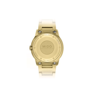 This MIDO watch has a case made of stainless steel with a diameter of 35 mm and is fitted with a stainless steel band. Inside the case lies a ETA movement and the watch features a Sapphire crystal.