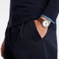 This Mondaine watch has a case made of stainless steel with a diameter of 40 mm and is fitted with a leather band. Inside the case lies a Ronda movement and the watch features a Mineral crystal.