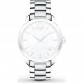 This Movado watch strap is made of stainless steel and is attached to the watch by means of pushpins. The band has a width of 18 mm and is closed by means of a deployment clasp with push buttons. The strap has no straight mount which means that this strap is only suitable for the watches listed below.