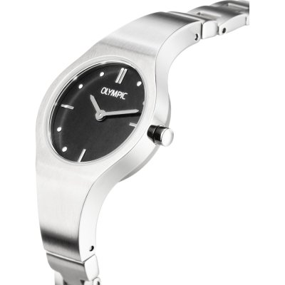 This Olympic watch has a case made of stainless steel with a diameter of 26 mm and is fitted with a stainless steel band. Inside the case lies a Seiko movement and the watch features a Mineral crystal.