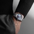 This latest addition to the Raymond Weil Freelancer range blends classic elegance with modern refinement. The watch features an in-house mechanical self-winding movement with a 41-hour power reserve (RW4420). The lugs of the 40mm case are curved so that the watch sits comfortable on the wrist, as does the jubilee-style bracelet with double-push folding clasp. Tighter bezel lines and a high gloss polish finish, as well as the sunrayed dial enhance depth and dynamic play of light. Applied indexes and refined hands with white Super-LumiNova ensure optimal legibility, while a subtle minute track positioned on the inner bezel completes the harmonious design. The screwed-down crown is embossed with an RW monogram and a the automatic movement is revealed through the sapphire crystal caseback, showing a W-shaped oscillating weight - distinctive signatures of the Raymond Weil brand.