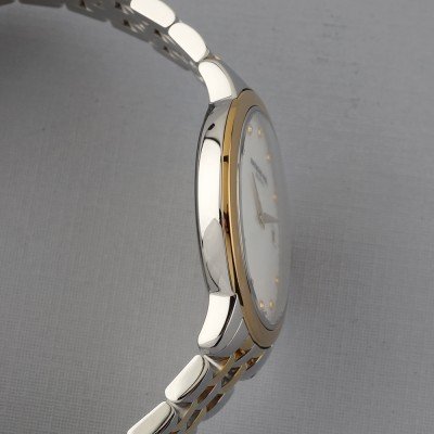 This Raymond Weil watch has a case made of stainless steel with a diameter of 34 mm and is fitted with a stainless steel band. Inside the case lies a ETA movement and the watch features a Sapphire crystal.