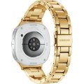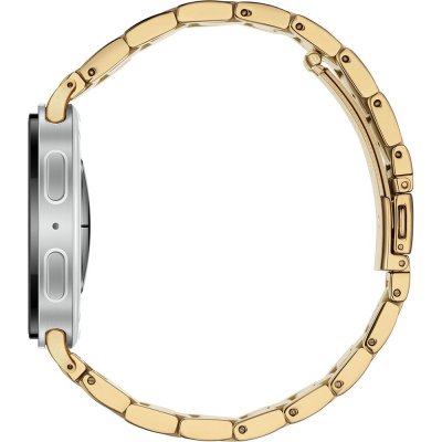This Samsung watch has a case made of Aluminum with a diameter of 40 mm and is fitted with a stainless steel band. Inside the case lies a Samsung movement and the watch features a Sapphire crystal.
