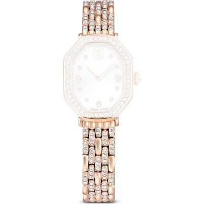 This Swarovski watch strap is made of stainless steel and is attached to the watch by means of steel pins. The band has a width of 11 mm and is closed by means of a invisible butterfly clasp. The strap has no straight mount which means that this strap is only suitable for the watches listed below.