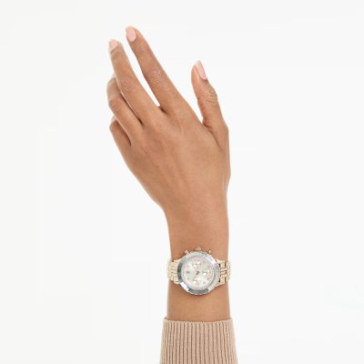 This Swarovski watch has a case made of stainless steel with a diameter of 37 mm and is fitted with a stainless steel band. Inside the case lies a Ronda movement and the watch features a Mineral crystal.