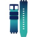This Swatch watch has a case made of plastic / resin with a diameter of 47 mm and is fitted with a rubber band. Inside the case lies a ETA movement and the watch features a Acrylic crystal.