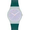 This Swatch watch strap is made of silicone and is attached to the watch by means of steel pins. The band has a width of 17 mm and is closed by means of a buckle. The strap has no straight mount which means that this strap is only suitable for the watches listed below.