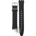 This Swatch watch strap is made of silicone and is attached to the watch by means of steel pins. The band has a width of 15.9 mm and is closed by means of a buckle. The strap has no straight mount which means that this strap is only suitable for the watches listed below.