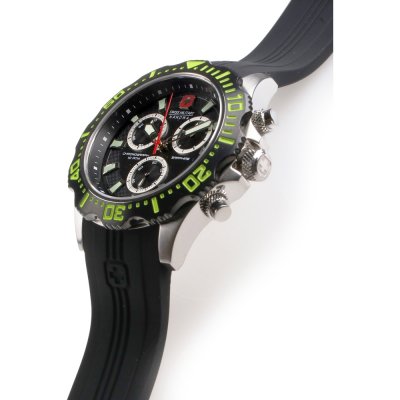 This Swiss Military Hanowa watch has a case made of stainless steel with a diameter of 44 mm and is fitted with a rubber band. Inside the case lies a ETA movement and the watch features a Sapphire crystal.