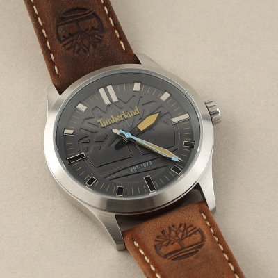 This Timberland watch has a case made of stainless steel with a diameter of 42 mm and is fitted with a leather band. Inside the case lies a Miyota movement and the watch features a Mineral crystal.