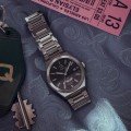 This Timex watch has a case made of stainless steel with a diameter of 39 mm and is fitted with a stainless steel band. Inside the case lies a Timex movement and the watch features a Mineral crystal.