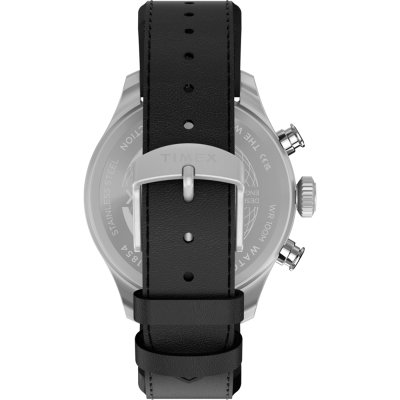 This Timex watch has a case made of stainless steel with a diameter of 43 mm and is fitted with a leather band. Inside the case lies a Timex movement and the watch features a Mineral crystal.