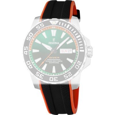 Ce bracelet de montre Festinaest fait de silicone et est attaché à la montre au moyen de Épingles à ressort. Le bracelet a une taille de 22 mm et se ferme au moyen d'un boucle. Le bracelet n'a pas de support droit, ce qui signifie que ce bracelet convient uniquement aux montres énumérées ci-dessous.