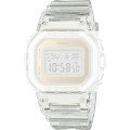 Ce bracelet de montre G-Shockest fait de résine et est attaché à la montre au moyen de Épingles à ressort. Le bracelet a une taille de 22 mm et se ferme au moyen d'un boucle. Le bracelet n'a pas de support droit, ce qui signifie que ce bracelet convient uniquement aux montres énumérées ci-dessous.