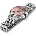 La Hamilton Jazzmaster Viewmatic équilibre parfaitement le formel et le sport en combinant un boîtier magnifiquement fini avec un mélange de surfaces polies et brossées et un cadran à cœur ouvert intrigant affichant les éléments mécaniques qui battent en dessous. Les découpes superbement exécutées dans le cadran ont une lunette très polie passant brusquement à un bord intérieur brossé, dirigeant l'œil vers le mouvement automatique H-10. Ce mouvement Hamilton très précis contient un spiral Nivachron non magnétique et dispose d'une réserve de marche de pas moins de 80 heures. La Jazzmaster Viewmatic Open Heart Auto est disponible dans une gamme de couleurs et dans des tailles de boîtier de 40 mm et 36 mm, pour hommes et femmes.