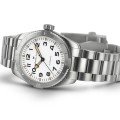 Cette montre Hamilton a un boîtier Inox 37 mm en diamètre et est équipée d'un bracelet Inox. Le boîtier contient un mouvement ETA et la montre est dotée d'un cristal Saphire..