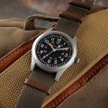 Cette montre Hamilton a un boîtier Inox 42 mm en diamètre et est équipée d'un bracelet Textile. Le boîtier contient un mouvement ETA et la montre est dotée d'un cristal Saphire..