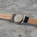 Magnifique montre du Danemark, en titane, gris argenté avec bracelet en cuir noir