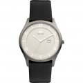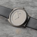 Mooi uurwerk uit Denemarken , titanium, zilvergrijs met zwart leren polsbandje