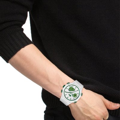 Cette montre Lacoste a un boîtier Résine 45 mm en diamètre et est équipée d'un bracelet caoutchouc. Le boîtier contient un mouvement Seiko et la montre est dotée d'un cristal Minéral..