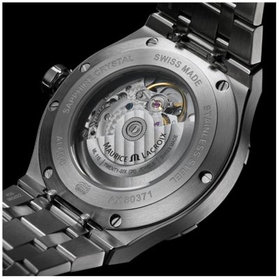 Cette montre Maurice Lacroix a un boîtier Inox 42 mm en diamètre et est équipée d'un bracelet Inox. Le boîtier contient un mouvement Sellita et la montre est dotée d'un cristal Saphire..