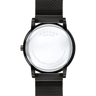 La Movado Museum Classic possède un cadran qui se rapproche le plus du design original. Avec une apparence aussi pure et minimaliste, il n'y a pas de place pour la négligence. Le cadran laqué à la finition mate - où seul un petit guichet de date rompt l'harmonie - contraste avec le point midi caractéristique. Les aiguilles dauphinoises magnifiquement sculptées ajoutent une autre couche de netteté et un niveau d'intérêt supplémentaire, témoignant d'une attention extrême portée aux détails. La montre est animée par un mouvement automatique suisse SW200 avec 38 heures de réserve de marche, visible à travers le fond du boîtier.