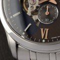 Cette magnifique montre ne s'appelle pas "Layered Skeleton" pour rien. Les sous-cadrans de la petite trotteuse et de la réserve de marche, ainsi que la partie avec le "cœur ouvert" en forme de Paisley, sont en retrait par rapport au cadran. Le cadran lui-même présente un éclat subtil et un motif à chevrons rappelant un luxueux costume en tissu tweed doublé de cupra. Les textures contrastées, le cadran superposé et les index en relief confèrent à la montre une profondeur qui est encore renforcée par l'aperçu du magnifique mouvement F6F44. Ce mouvement automatique développé en interne peut également être remonté à la main et dispose d'une réserve de marche de 50 heures. La finition est - comme nous en avons l'habitude chez Orient Star - excellente, avec un bracelet à maillons brossés et polis et un verre saphir antireflet.