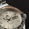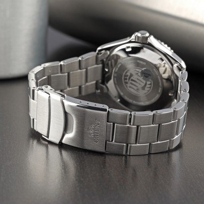Cette montre Orient a un boîtier Inox 41.8 mm en diamètre et est équipée d'un bracelet Inox. Le boîtier contient un mouvement Orient et la montre est dotée d'un cristal Saphire..
