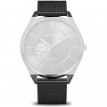 Esta bracelete de relógio Bering é feita de aço inoxidável e está fixada ao relógio através de pinos carregados por mola de liberação rápida. A bracelete tem uma largura de 20 mm e fecha através de fecho milanese. A bracelete tem uma montagem a direito, o que significa que esta bracelete é adequada para todos os relógios Bering com montagem da bracelete a direito.