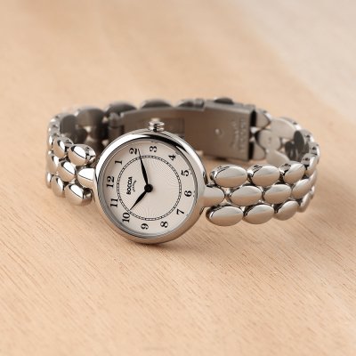 Este relógio Boccia tem uma caixa de Titânio com um diâmetro de 26 mm e está equipado com uma bracelete de Titânio. A caixa possui um movimento Miyota e o relógio tem um vidro Mineral.