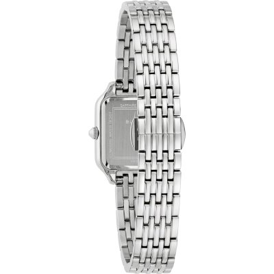 Este relógio Bulova tem uma caixa de Inox com um diâmetro de 23 mm e está equipado com uma bracelete de Inox. A caixa possui um movimento Miyota e o relógio tem um vidro Safira.