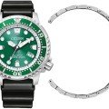 Este relógio Citizen tem uma caixa de Inox com um diâmetro de 44 mm e está equipado com uma bracelete de borracha. A caixa possui um movimento Citizen e o relógio tem um vidro Mineral.