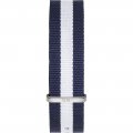 Esta bracelete de relógio Daniel Wellington é feita de tecido e está fixada ao relógio através de pinos de pressão. A bracelete tem uma largura de 20 mm e fecha através de fecho. A bracelete tem uma montagem a direito, o que significa que esta bracelete é adequada para todos os relógios Daniel Wellington com montagem da bracelete a direito.