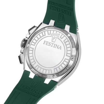 Este relógio Festina tem uma caixa de Inox com um diâmetro de 46 mm e está equipado com uma bracelete de borracha. A caixa possui um movimento Miyota e o relógio tem um vidro Mineral.