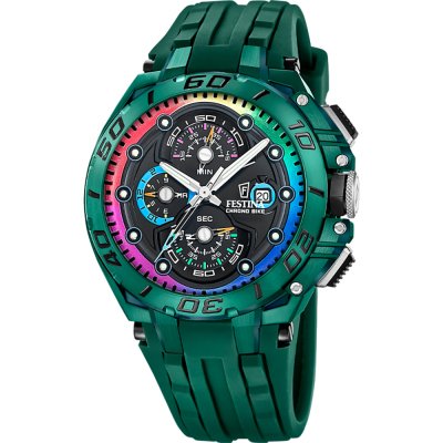 Este relógio Festina tem uma caixa de Inox com um diâmetro de 46 mm e está equipado com uma bracelete de Inox. A caixa possui um movimento Miyota e o relógio tem um vidro Mineral.