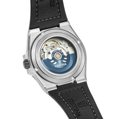 Este relógio Festina tem uma caixa de Inox com um diâmetro de 42 mm e está equipado com uma bracelete de borracha. A caixa possui um movimento Soprod e o relógio tem um vidro Safira.