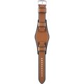 Esta bracelete de relógio Fossil é feita de couro e está fixada ao relógio através de pinos carregados por mola de liberação rápida. A bracelete tem uma largura de 22 mm e fecha através de fecho. A bracelete tem uma montagem a direito, o que significa que esta bracelete é adequada para todos os relógios Fossil com montagem da bracelete a direito.