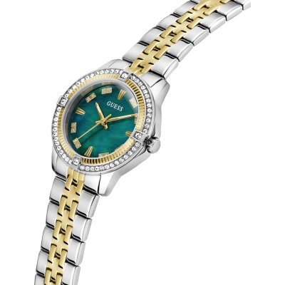 Este relógio Guess tem uma caixa de Inox com um diâmetro de 32 mm e está equipado com uma bracelete de Inox. A caixa possui um movimento Seiko e o relógio tem um vidro Mineral.