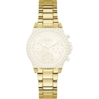 Esta bracelete de relógio Guess é feita de aço inoxidável e está fixada ao relógio através de pinos de pressão. A bracelete tem uma largura de 18 mm e fecha através de fivela dobrável. A bracelete tem uma montagem a direito, o que significa que esta bracelete é adequada para todos os relógios Guess com montagem da bracelete a direito.