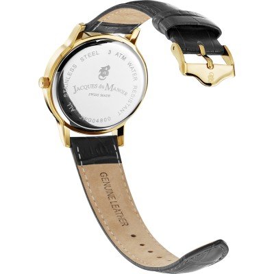 Este relógio Jacques du Manoir tem uma caixa de Inox com um diâmetro de 38 mm e está equipado com uma bracelete de couro. A caixa possui um movimento Ronda e o relógio tem um vidro Mineral.