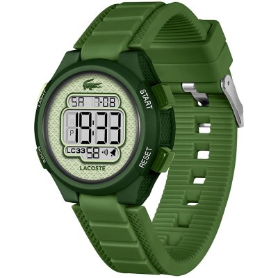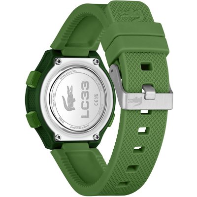 Este relógio Lacoste tem uma caixa de Resina com um diâmetro de 34 mm e está equipado com uma bracelete de borracha.